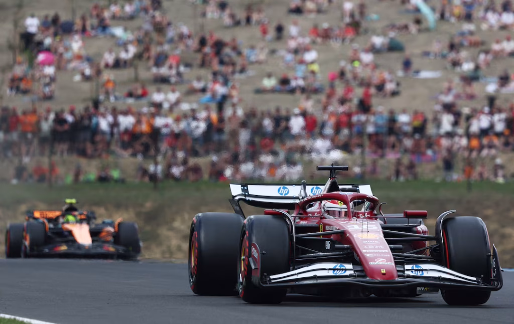 Leclerc now has a real chance of securing Ferrari’s first win of 2025 if he can stave off the McLarens on Sunday, when rain is a possible complication.