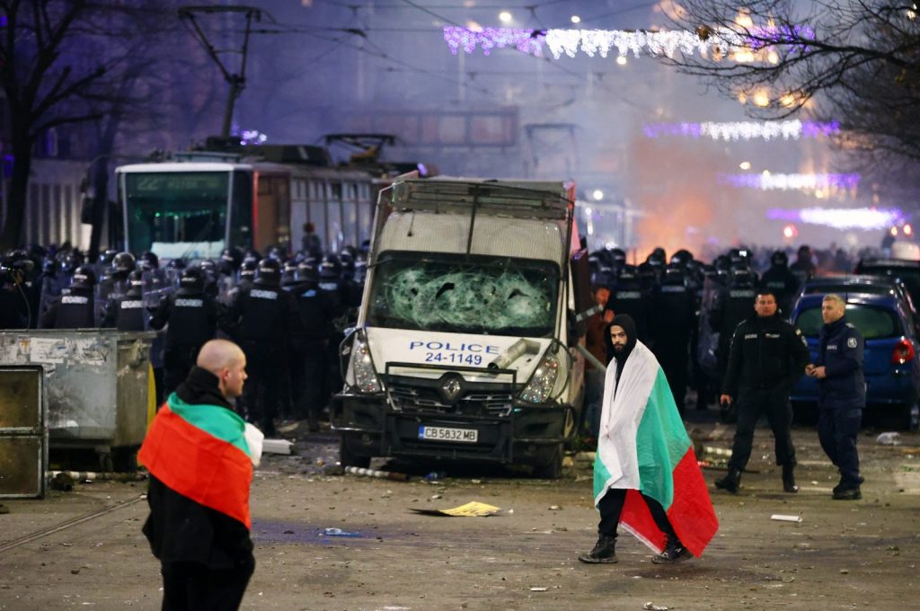 The protests in the capital, Sofia, and in dozens of other towns and cities across the Black Sea nation are the latest in a series of rolling demonstrations and come as Bulgaria prepares to adopt the euro on January 1.